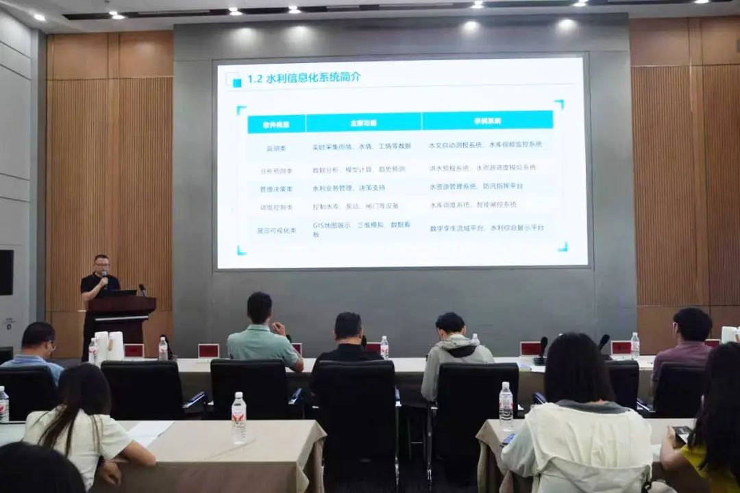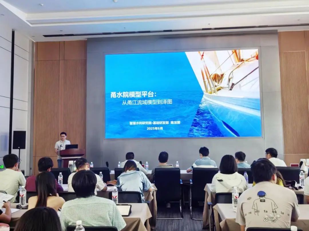 在第二日的講座報告與交流環(huán)節中,我院智慧水利研究院院長(cháng)顧巍巍以“基于大模型的防汛AI問(wèn)答關(guān)鍵技術(shù)研究及應用”為題,通過(guò)現場(chǎng)演示防汛智能AI問(wèn)答系統,生動(dòng)展示了人工智能技術(shù)在防汛決策支持中的創(chuàng )新應用;基礎研發(fā)部總監陳龍贊圍繞“甬水院模型平臺:從甬江流域模型到澤圖”,詳細闡述了我院自主研發(fā)的水利計算模型平臺的技術(shù)演進(jìn)歷程和核心優(yōu)勢;防災減災部總監江雨田則通過(guò)播放數字孿生水庫建設視頻,結合“數字孿生水庫建設關(guān)鍵技術(shù)及應用”的專(zhuān)題報告,直觀(guān)呈現了數字孿生技術(shù)在水庫智慧化管理中的實(shí)踐成果。三位專(zhuān)家的授課既有理論深度,又包含豐富的實(shí)踐案例,系統解析了智慧水利領(lǐng)域關(guān)鍵技術(shù)的研發(fā)路徑與創(chuàng )新應用。