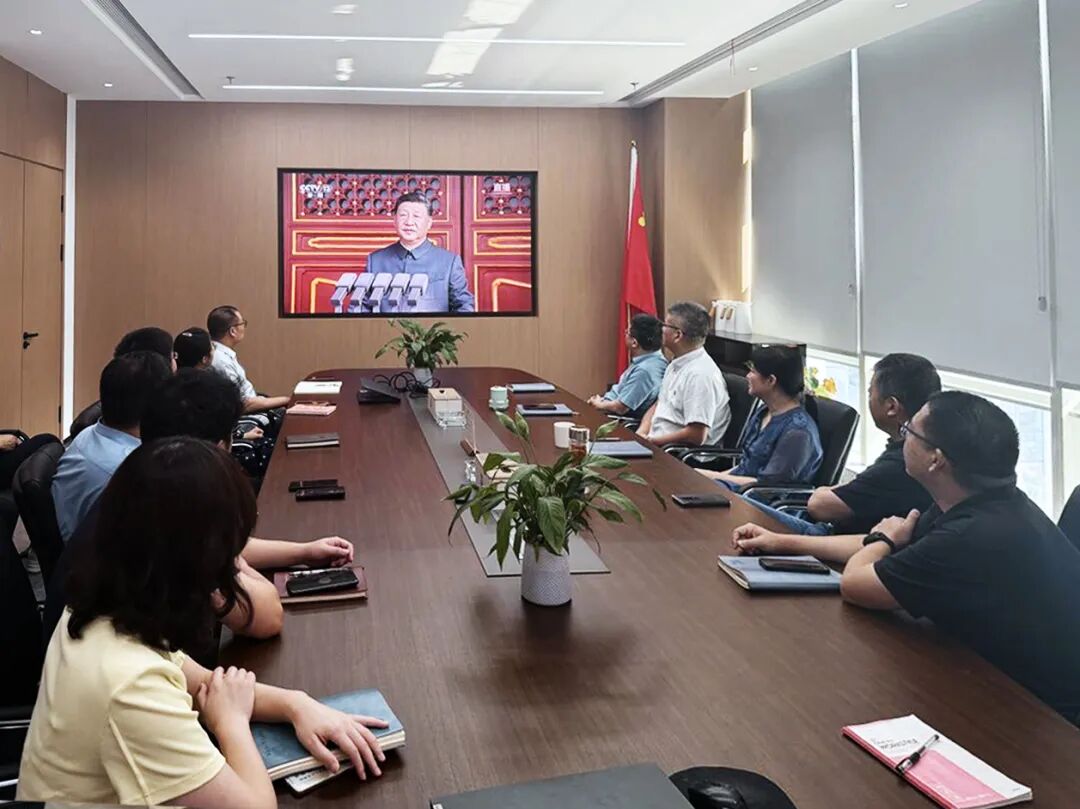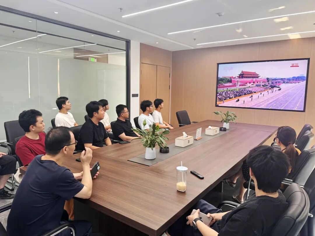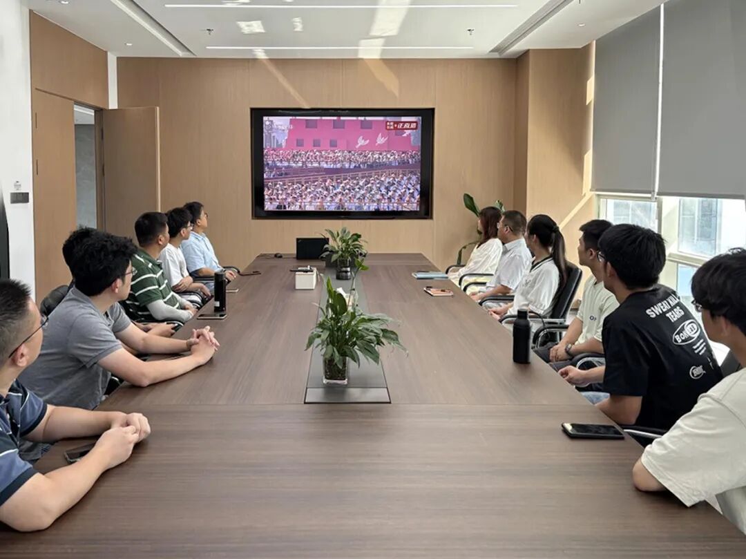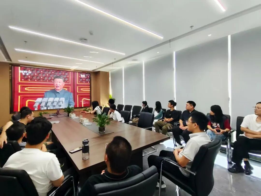 新大樓各層會(huì )議室現場(chǎng)氣氛莊重,全體黨員及職工認真聆聽(tīng)習近平主席重要講話(huà)。當閱兵儀式開(kāi)始時(shí),大家不時(shí)為受閱部隊的雄壯陣容和先進(jìn)裝備贊嘆鼓掌,由衷為祖國日益強大的綜合國力與國防力量感到自豪。觀(guān)看結束后,黨員們深受震撼、心潮澎湃,一致認為這場(chǎng)閱兵不僅展示了國威軍威,更彰顯了中華民族百折不撓、團結奮進(jìn)的偉大精神。