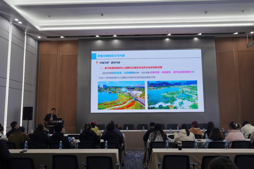 我院規(guī)劃院綜合與市場發(fā)展部主任胡劍以“新時期幸福河湖建設(shè)思路及典型案例”為主題,結(jié)合生動案例,深入解讀"幸福河湖"的豐富內(nèi)涵:安全、生態(tài)、宜居、智慧、文化,是按照“全域推進、重點打造”的總體思路,“點、線、面”開展多元化精品示范建設(shè),構(gòu)建全域幸福格局,展現(xiàn)人水和諧的寧波實踐。