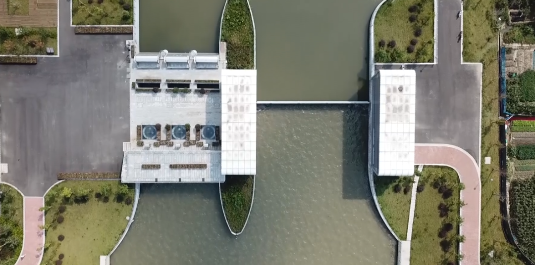 工程規劃與區域發(fā)展規劃高度融合,打通了原洞船河與姚江之間的“斷頭路”,提高了鄞西平原城區的防洪排澇能力。項目建筑設計與周邊環(huán)境完美結合。泵站及閘門(mén)上部采用無(wú)廠(chǎng)房設計,水泵機組采用立式潛水機組,閘門(mén)采用底軸驅動(dòng)翻板門(mén),泵站上下游視野通透,觀(guān)感效果佳。管理房屋頂設計為綠化屋頂,管理房隱藏于周邊綠化之中,滿(mǎn)足姚江岸高標準景觀(guān)要求。生態(tài)河道設計符合人文和諧之美。護岸采用干壘生態(tài)擋塊,中間預留魚(yú)槽設計,充分體現了生態(tài)環(huán)保設計理念。