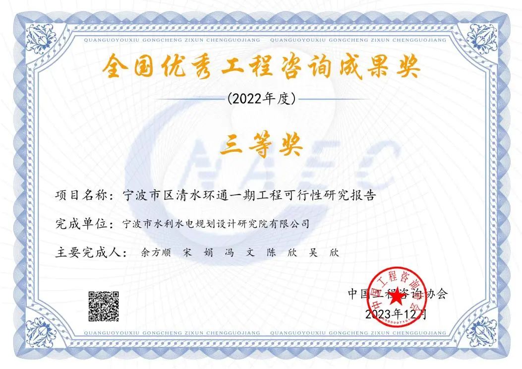 2023年我院多個(gè)項目在各類(lèi)評比中脫穎而出,榮獲中國水利工程優(yōu)質(zhì)(大禹)獎、國家優(yōu)質(zhì)工程金獎、全國優(yōu)秀工程咨詢(xún)成果三等獎、浙江省水利科技創(chuàng )新獎、浙江省水土保持學(xué)會(huì )第三屆優(yōu)秀設計三等獎、“浙江省文明標化工地”稱(chēng)號、2023 年度寧波市建設工程優(yōu)秀勘察設計獎、2023年度寧波市“甬江建設杯”優(yōu)質(zhì)工程獎、寧波市水利科技創(chuàng )新獎、寧波市水利學(xué)會(huì )優(yōu)秀論文獎等各類(lèi)榮譽(yù)20余項。