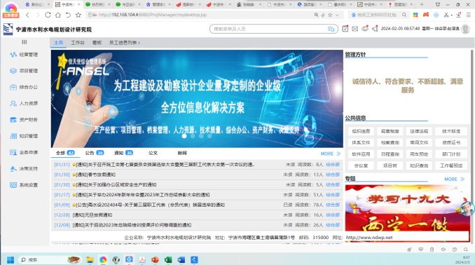從2002年探索建設流域數字化至今,寧波院業(yè)務(wù)的數字化已走過(guò)了20多年,2023年,以事業(yè)部制轉型為契機,提出建設以OA辦公系統、業(yè)財一體化系統、知識庫系統為代表的管理工具,在業(yè)務(wù)數字化的基礎上,推動(dòng)企業(yè)管理的數字化轉型。