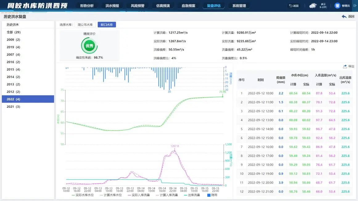 自系統試運行以來(lái),成功支撐周公宅和皎口兩座水庫有效應對2022年的“軒嵐諾”和“梅花”、2023年的“杜蘇芮”和“卡努”等多場(chǎng)臺風(fēng)暴雨的挑戰。尤其在2022年“梅花”臺風(fēng)來(lái)襲時(shí),面對降雨量超過(guò)50年一遇的極端天氣,系統快速生成了多組預報調度方案,通過(guò)正向預演,精準模擬了不同方案下水庫的漲落情況以及下游的受影響程度。同時(shí),利用逆向推演功能,科學(xué)制定水庫前期的預泄措施和中期攔蓄洪峰的調度策略。