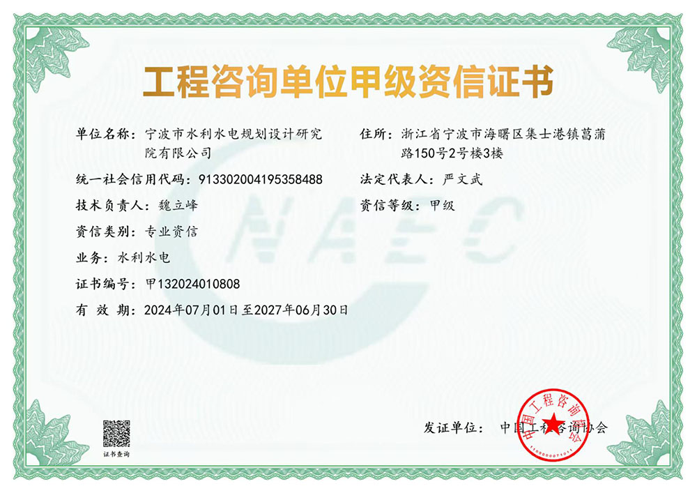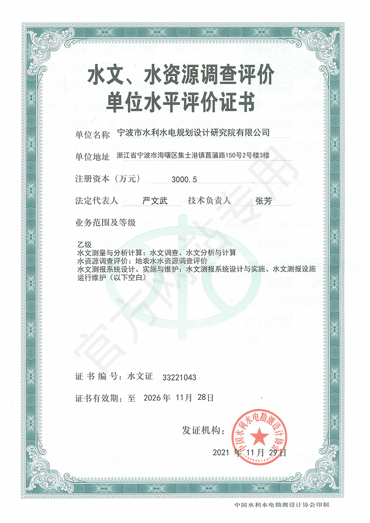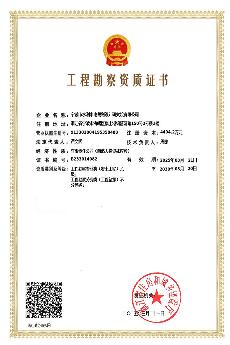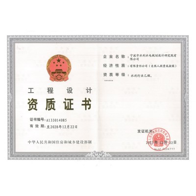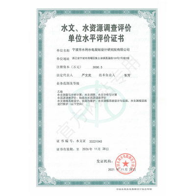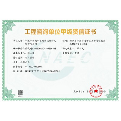 寧波院具有水利水電工程設計、工程勘察、工程咨詢(xún)、水土保持、水資源論證等多項資質(zhì)。承擔中小河流域規劃、水庫、河道整治、灘涂圍墾等工程的勘察、設計、咨詢(xún)、總承包業(yè)務(wù),以及各領(lǐng)域建設項目的防洪評價(jià)、水資源論證、水土保持方案編制、水土保持監測、計算機行業(yè)CMMI 3級認證、知識產(chǎn)權管理體系認證等。